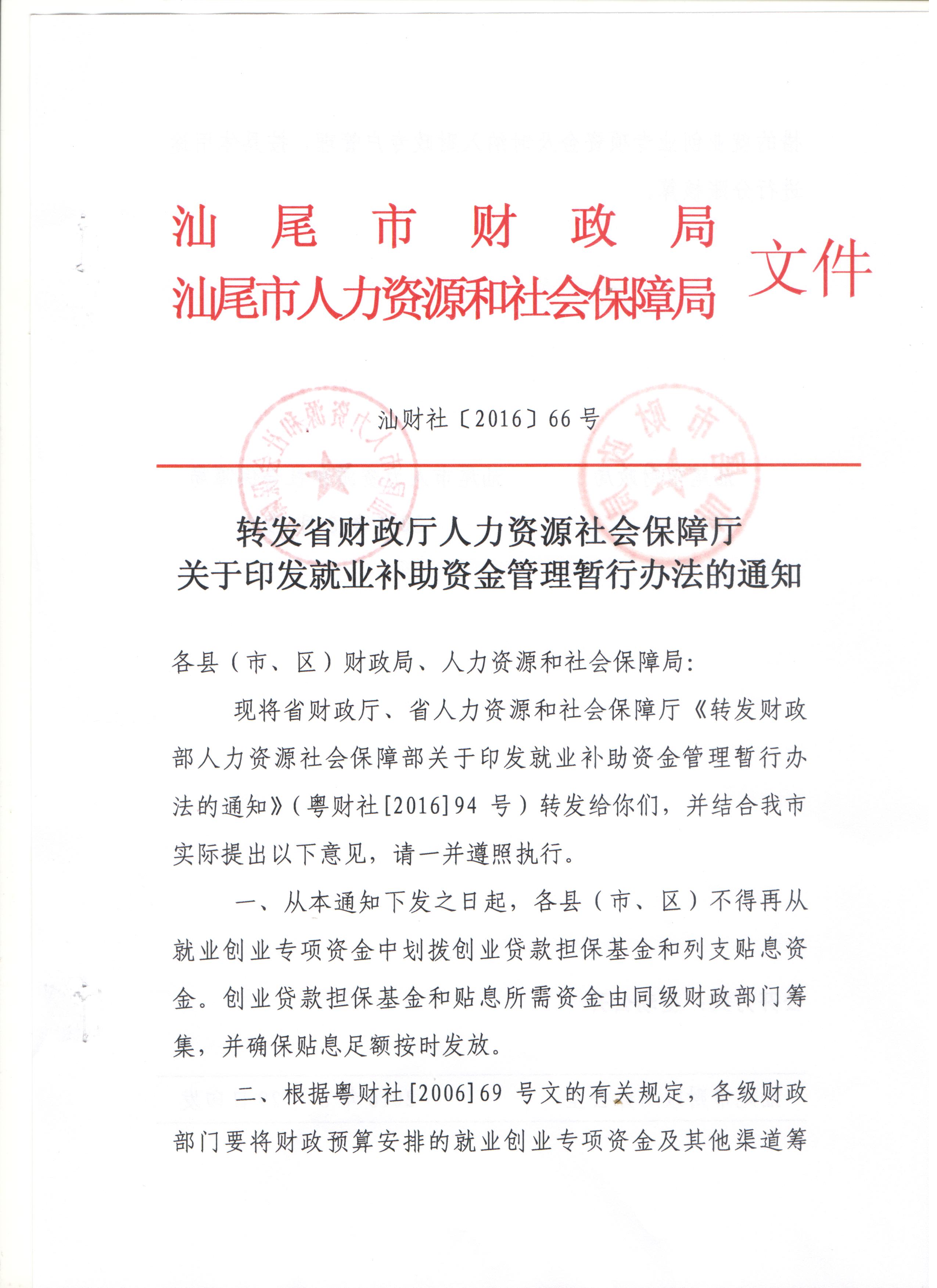 附件:转发财政部人力资源社会保障部关于印发就业补助资金管理暂行办法的通知粤财社[2016]94号.pdf