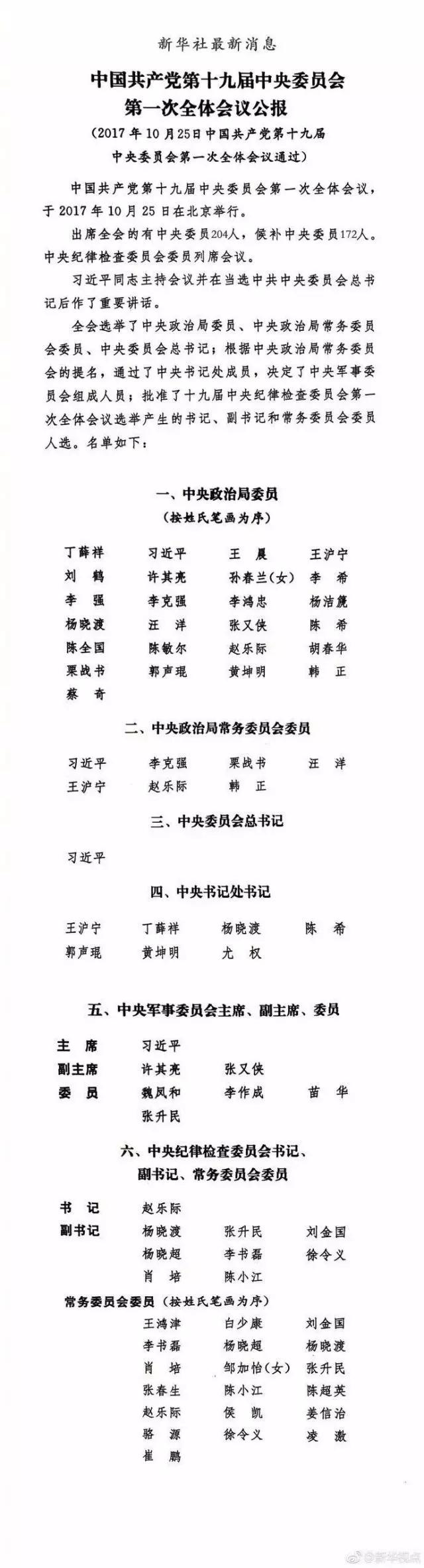 快讯!党的新一届中央领导机构诞生了!